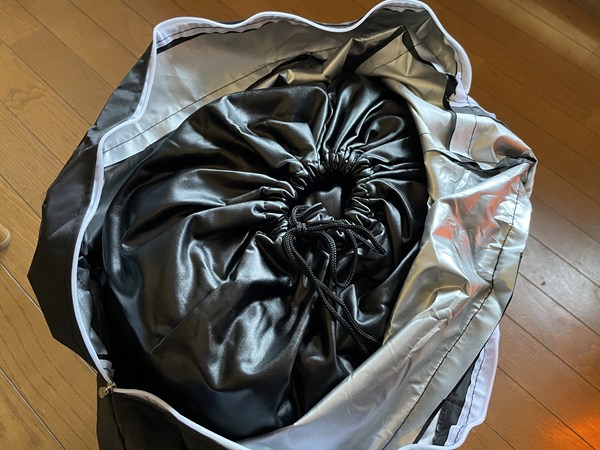 ボディカバー自体の重さは結構あるのですが、内側の起毛処理布によってボディ上での滑りがスムーズなので、簡単に装着することができました。