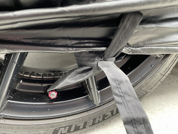 ボディカバー最大の敵は風です。本製品は素材自体に適度な重みがあり、さらにホイールロープで固定できるため、風でカバーが浮き上がるのを防いでくれます。密着性が高いので、塗装面とカバーが擦れる「バタつき」が起きにくい構造です。
