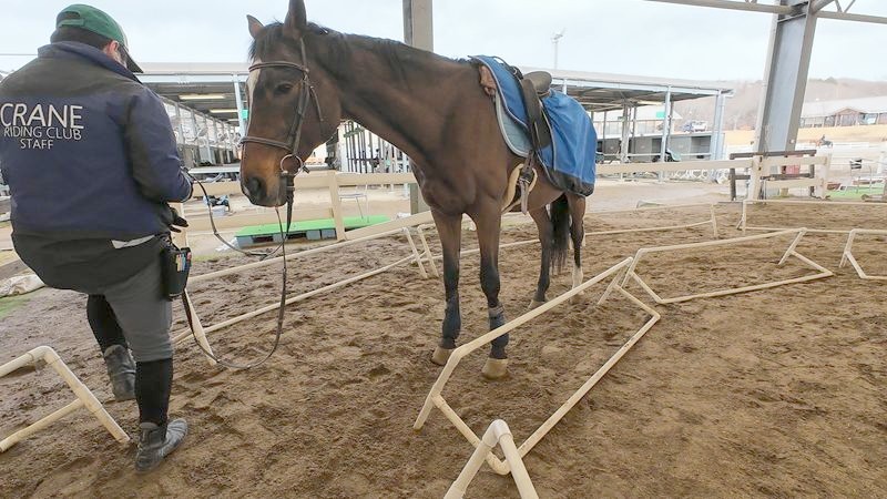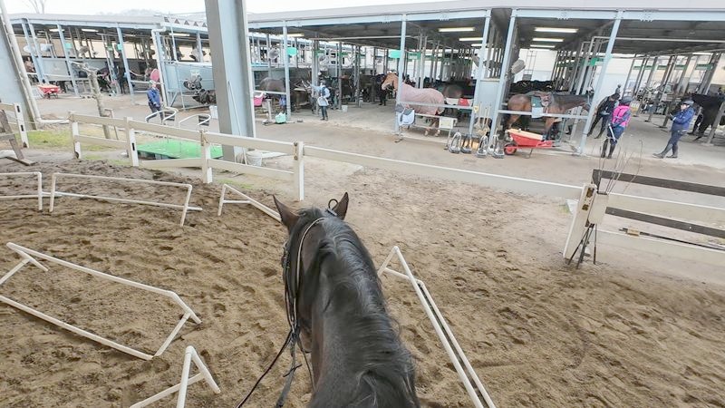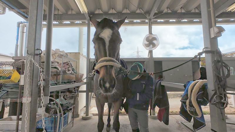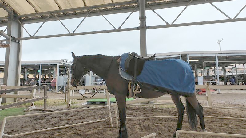 準備を済ませ、クラブハウスを出て馬のところへ向かいます。