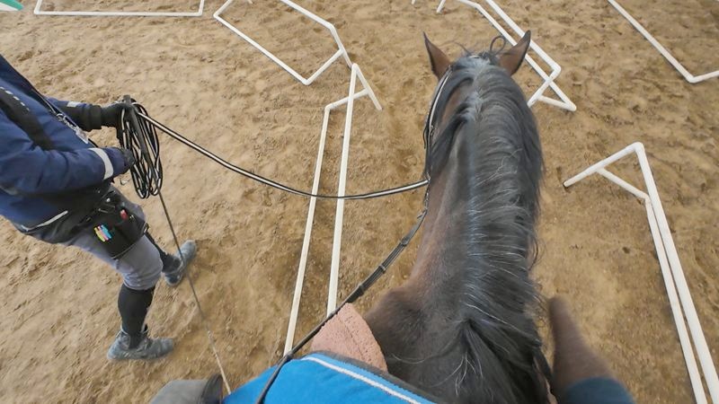 屋根付きの練習場があるので、雨の日でも安心して乗馬が楽しめるようになっています。練習場の中には数か所のサークルが設置されていて、その中を回る形で練習が行われていました。